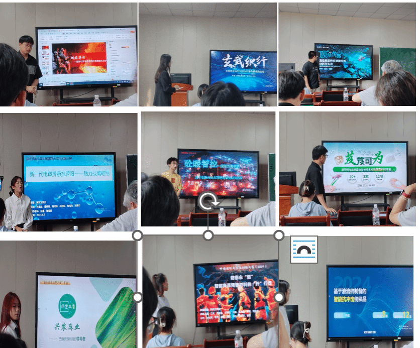 中国国际大学创新大赛成人短视频 院赛自2023年12月份启动以来,经过广泛宣传和动员,共有125项作品报名。成人短视频 优选了14项优秀作品参加院赛答辩。参加本次大赛的各项目汇报人依次介绍了自己项目。向绍琼介绍了“新一代电磁屏蔽抗荷服”,周洋东介绍了"膜"法传感-高性能柔性可穿戴传感设备,顾佳音介绍了“兴农麻业”项目,郑丽萍介绍了“海维盾——航海新纪元的波涛守护者”项目,金正浩介绍了“砼暖智控-安居智能守护”项目,陈定伟介绍了“刚柔并济-玄武岩基消防装备的研发及应用”项目,徐佳琳介绍了“绿净环保科技-水葫芦资源利用的领导者”项目,李杨介绍了“弹无可惧—新型针织防弹伞布开拓者”项目,徐执钦介绍了“芨芨可为——基于靶向控制晶体生长技术的白芨敷料领军者”项目,韩秀介绍了“玄武织纤-玄武岩纤维及其衍生制品在特种领域的应用”项目,屈雪茹介绍了项目“防患未“燃”---智能高温预警材料的“纤”行者”宁惠介绍了“液流体纺纱技术及其智能应急防护纺织品开发”项目,黄丽娜介绍了水相提取咖啡渣色素及锦纶抗UV染色。