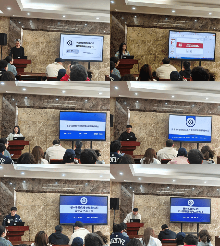 论坛上,李泽辰伍志喜冉淑贤王善滋陈鑫胜刘浩宇六位同学依次介绍了自己的研究课题和目前取得的研究进展,并分享了自己的科研经验。主讲同学的研究课题包括双金属碳复合纳米纤维材料及其性能研究、功能化不对称性膜的制备及其在海水淡化的应用、辐射制冷涂层的制备及性能研究、基于静电吸附原理的面料抓取机械臂研究、特种场景保暖针织物结构设计及产品开发、基于机器学习的纱线质量预测与工艺优化,契合了“纺织新材料及绿色加工”主题,代表了成人短视频 最新研究进展,参会人员积极提出问题和建议,营造了良好的学术氛围。