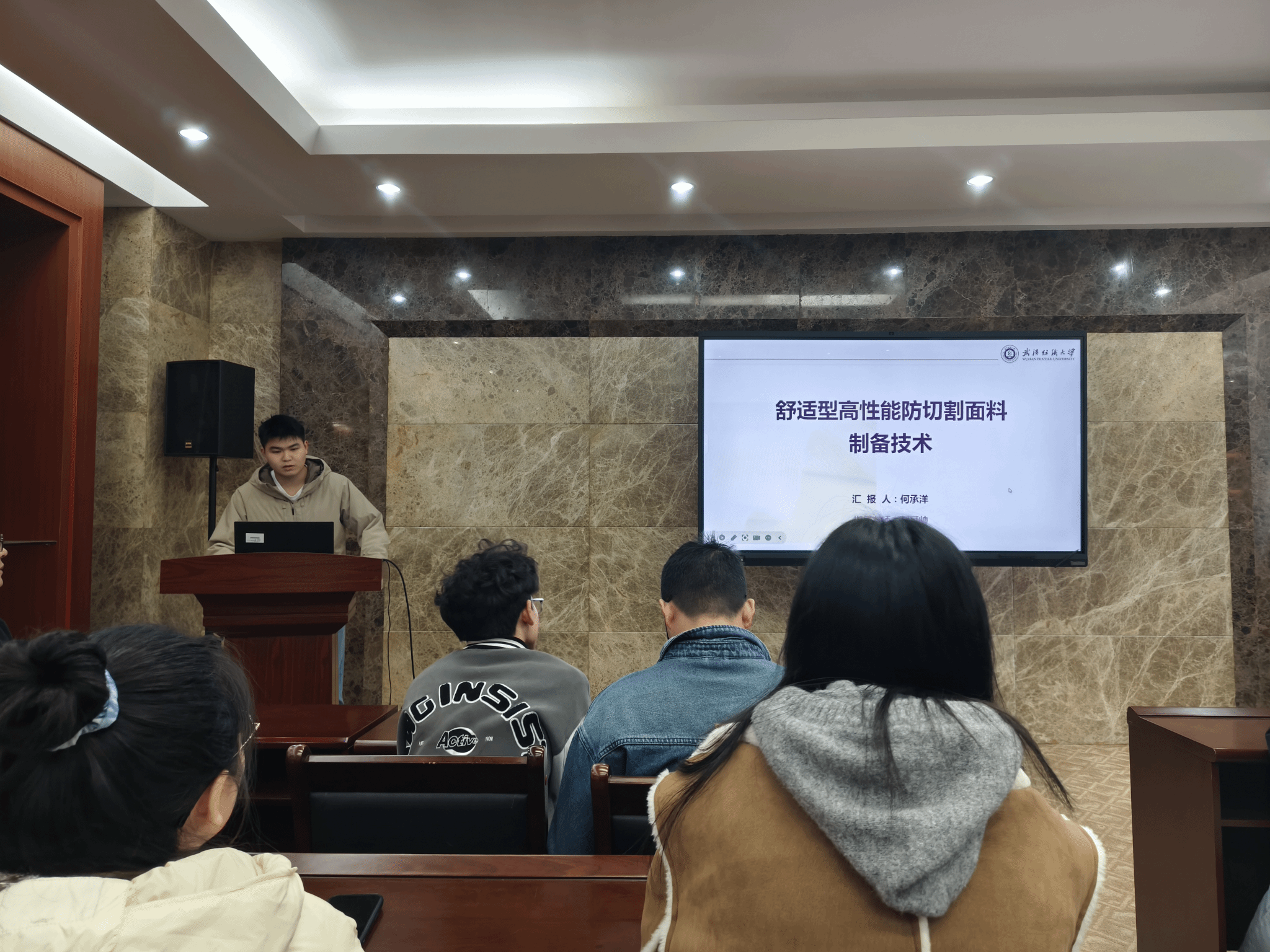 论坛上,王蒙召赖嘉馨侯林松 何承洋位同学依次介绍了自己的研究课题和目前取得的研究进展,并分享了自己的科研经验。主讲同学研究课题包括,生物质导电水凝胶结构设计及制备涤纶织物环保阻燃防熔滴涂层的构建基于有限元模型的经编运动内衣压力舒适性研究功能纺织品的制备及研究纤维素基辐射制冷膜的制备及其性能研究具有优化电热利用的可伸缩缝纫纺织品用于高效的全天候海水淡化舒适型高性能防切割面料制备技术契合了“纺织新材料及绿色加工”主题,代表了成人短视频 最新研究进展,参会人员积极提出问题和建议,营造了良好的学术氛围。