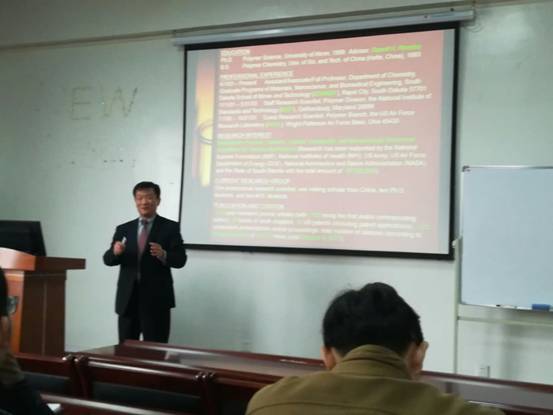 楼8H502做“静电纺碳纳米纤维的制备及应用”的讲座,讲座主要介绍了静电纺碳纳米纤维的制备方法,并介绍了目前他研究的两种类型的静电纺纳米碳纤维 (具有良好的机械性能或者高比表面积)的制备方法、性能与应用。