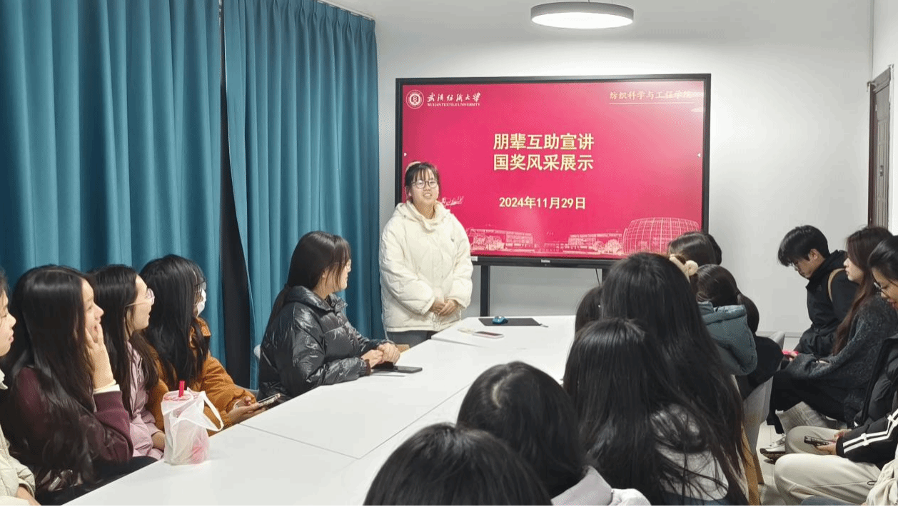 于2024年11月29日在“织争朝夕”一站式学生社区成功举办了“朋辈互助宣讲与国奖风采展示”活动。本次活动由23级辅导员余国铖老师主持,国家奖学金获得者和部分学生代表共同参与。