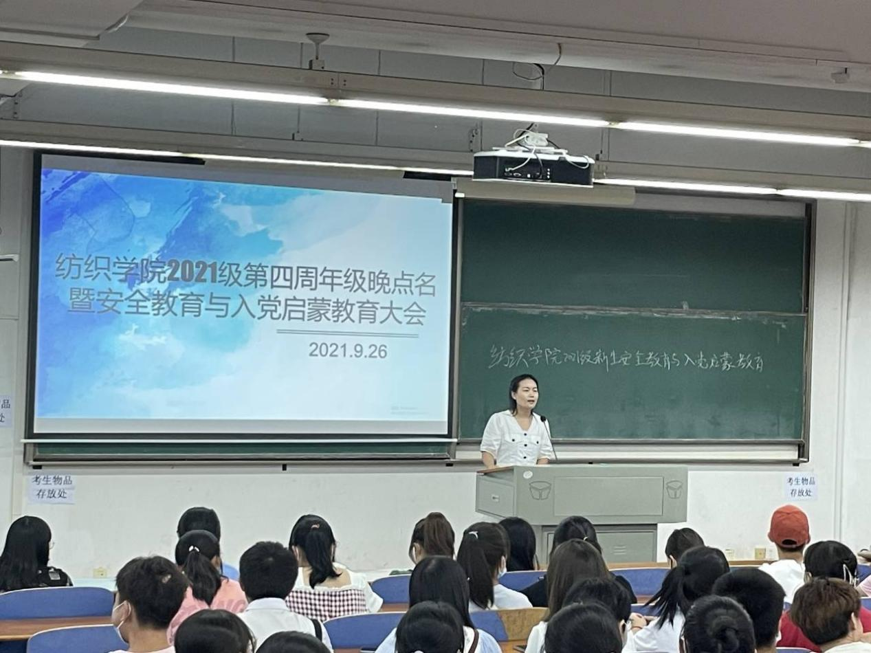 于26日晚召开了2021-2022学年年级晚点名暨新生安全教育与入党启蒙教育大会。会议由2021级辅导员张竣青主持,全院2021级新生参加。
