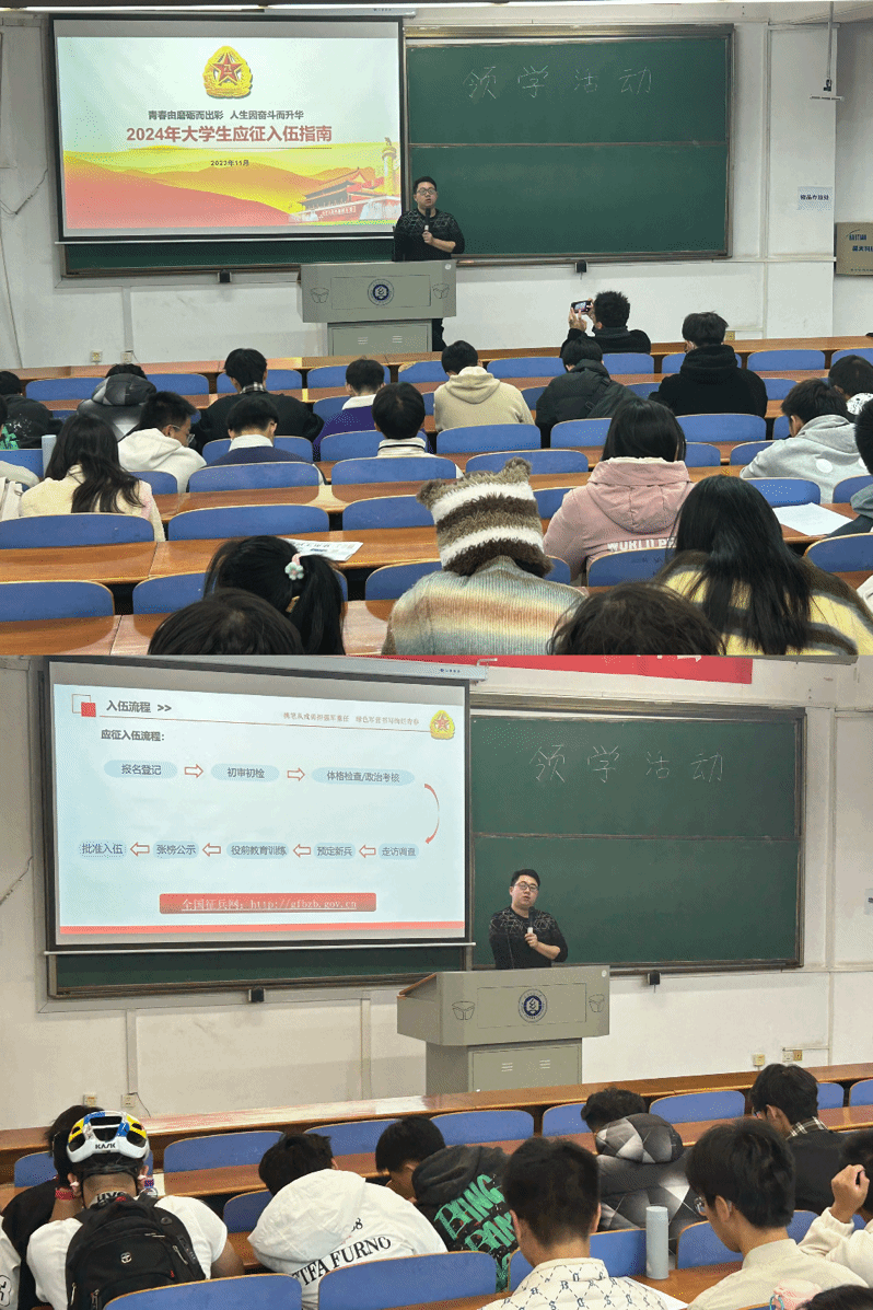 在YG-T101开展了“2024年大学生应征入伍指南宣讲”大会。23级辅导员余国铖、向婷及23级全体同学共同参与。