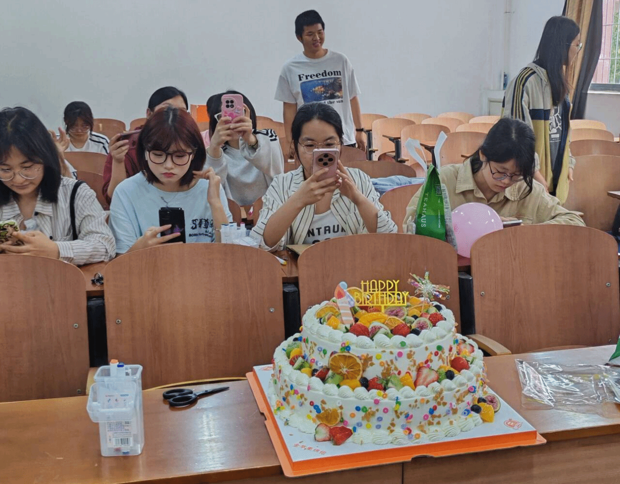 活动最后大家合影留念。将艺术疗愈融入集体生日会,是心理健康教育形式的一次创新尝试。通过非语言表达和团队共创,学生得以释放压力,同时强化了朋辈支持网络。后续,成人短视频