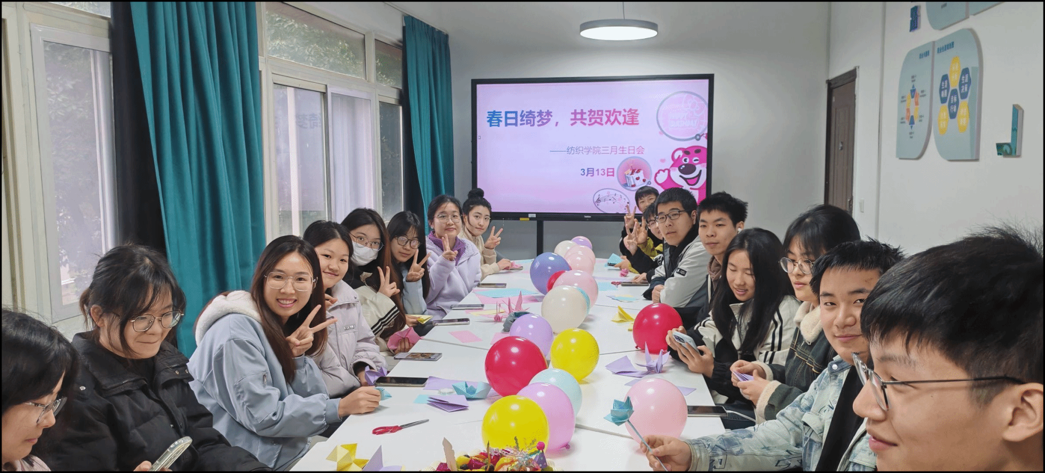 织心湾于十三栋一站式为纺院全体学生中的寿星们举办了一场别开生面的集体生日会,主题为“花漾纸艺手作局——以纸折花迎新春”,现场充满欢声笑语,洋溢着浓浓的温情。