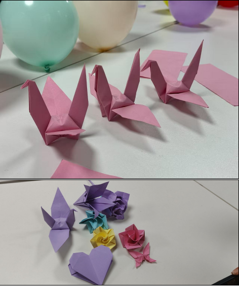 在温馨的氛围中,同学们纷纷参与到精彩的互动环节中。大家一同唱响生日歌,悠扬的歌声饱含着对寿星们最真挚的祝福。“花漾纸艺手作局”将活动氛围推向高潮,同学们拿起卡纸、剪刀,发挥自己的创意与巧手,精心折出一朵朵形态各异的纸花。这些纸花不仅是手工艺品,更承载着同学们对美好生活的向往。