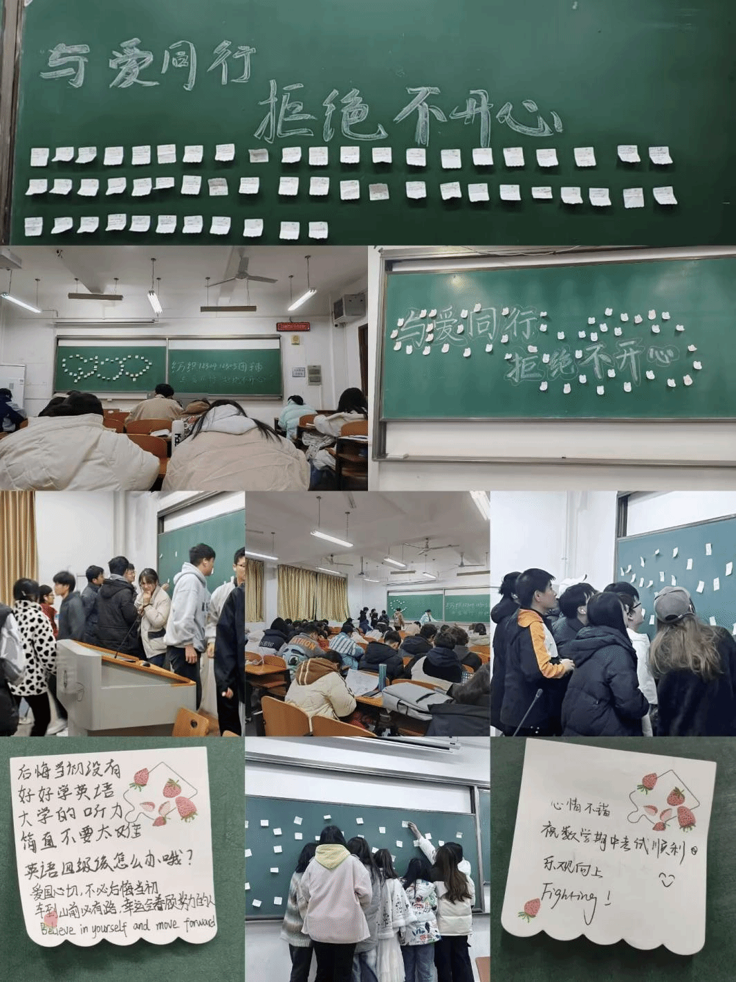 在这个快速发展的社会,焦虑和压力似乎已经成为我们生活的一部分。为了帮助同学们缓解这些负面情绪,2023年11月30日,成人短视频 织心湾与辅导员向婷、余国铖老师一同在三栋教学楼组织了以"与爱同行,拒绝不开心"为主题的团辅活动,通过互动和分享,让成人短视频 的同学们在轻松愉快的氛围中释放压力,提升心情,保持积极向上的心态,帮助同学们更清晰了解自己现阶段的学习生活适应状况,及时调整身心,保证他们的心理健康。