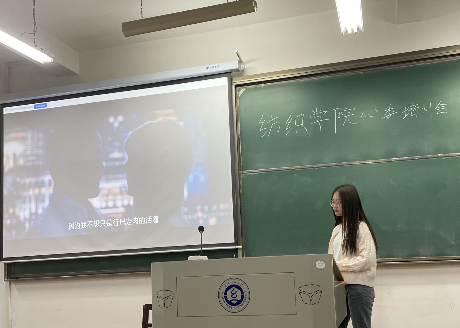 4月24日晚19:30分,成人短视频 学生会部门织心湾在三栋220教室开展心理委员培训会。主讲人由织心湾优秀干事郑佳佳与吕咏琳担任。虽然是第一次上台进行培训会的演讲,但二位女孩却没有丝毫的怯场,谈吐清晰,有条有理地为大家介绍了有关消极情绪的知识。