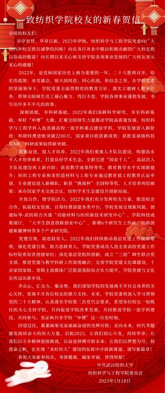 回望过往,累累硕果见证砥砺奋进的光辉历程;走向未来,时代考题激发接续奋斗的伟大力量。启航2023,让我们初心不变,再续华章;让我们以斗争精神迎接挑战,以奋进拼搏开辟未来;让我们以梦想为号、扬使命之帆,在实现“美好纺大”建设的征程中开辟新赛道、谱写新篇章!