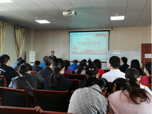 党委副书记陈海向全体教职工传达了中国共产党第十九届中央委员会第五次全体会议公报。