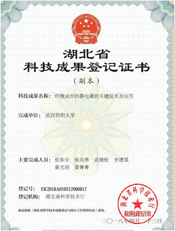 4月16日,湖北省技术成果交易所组织专家评审会,对我院张如全教授领衔的“纤维成形的静电调控关键技术及应用”成果进行技术评价。专家们对该成果的创新性、成熟度及应用成效等方面给予高度肯定。《科技成果评价报告》(鄂技交评字[2018]第104号)的结论为:该项目技术成果创新性突出,整体达到国际先进水平。据悉,该项目组在近十年的研发及应用过程中获授权发明专利15项,成果在省内外多家企业转化应用产生了良好的社会与经济效益。