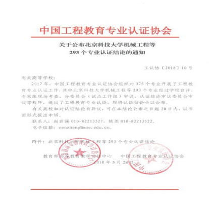 根据5月28日中国工程教育专业认证协会发布的“关于公布北京科技大学机械工程等293个专业认证结论的通知”(工认协【2018】10号文),2017年全国共有375个专业开展了工程教育专业认证工作,293个专业经过学校自评、专家组现场考察、各分委员会审议、认证结论审查委员会审议等程序,通过了工程教育专业认证。成人短视频纺织工程专业位列其中。