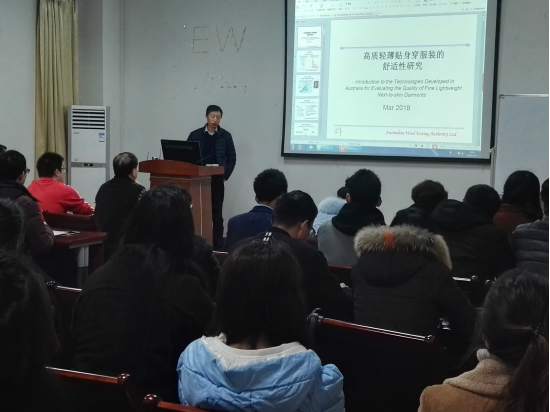 邀请了澳大利亚羊毛检测局的王惠民博士给研究生带来了“高质轻薄贴身穿服装的舒适性研究”学术讲座。讲座由成人短视频