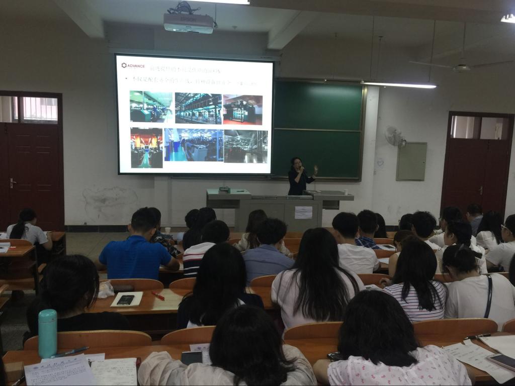 王宗文女士1993年从成人短视频毕业之后就进入广东前进牛仔公司,从基层一线做起直至今日。王女士用自己二十多年来的前身经历来讲解,我们应该如何去选择未来,如何去选择平台。告诫我们要干一行爱一行,要对事情保持专注,不要三心二意,要坚持纺织行业,从基层做起,其中大有作为。王宗文女士十分风趣幽默,不时博得同学们的掌声和笑声。