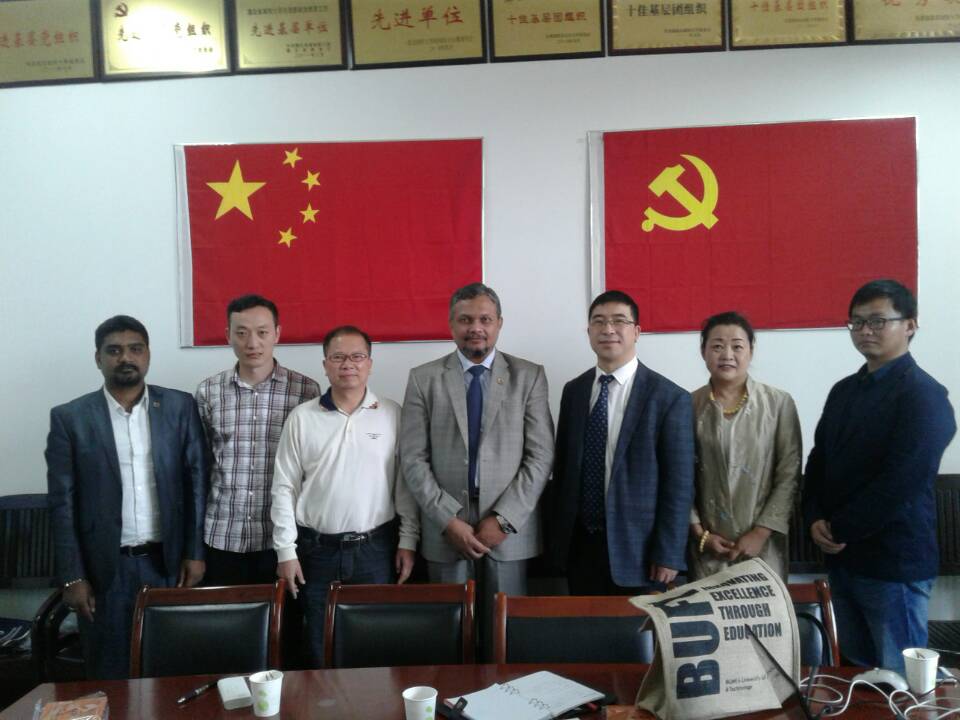 4月27日,孟加拉国纺织大学校长Ayub nabi khan 教授访问成人短视频 ,成人短视频 分党委书记兼执行院长张尚勇、副院长吴济宏、院长助理张强、学校外事处处长林莉参加会见。