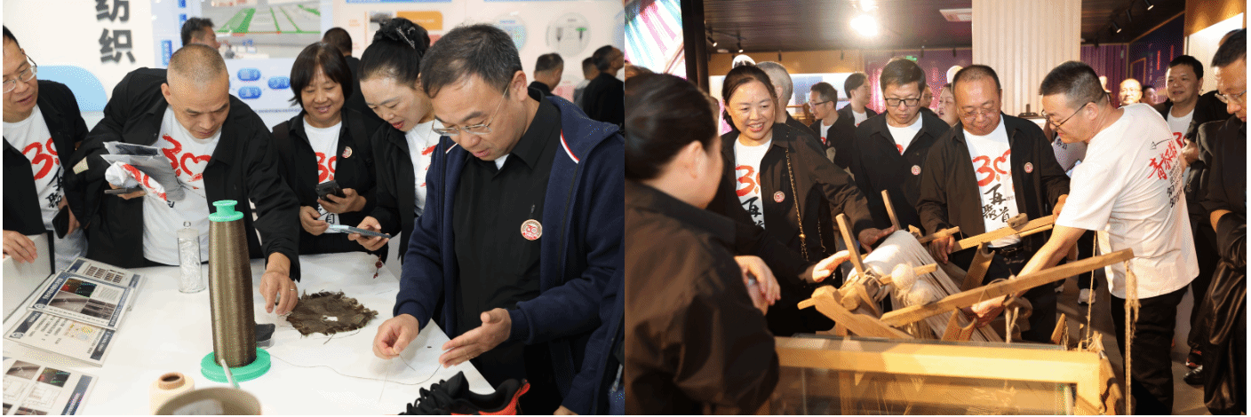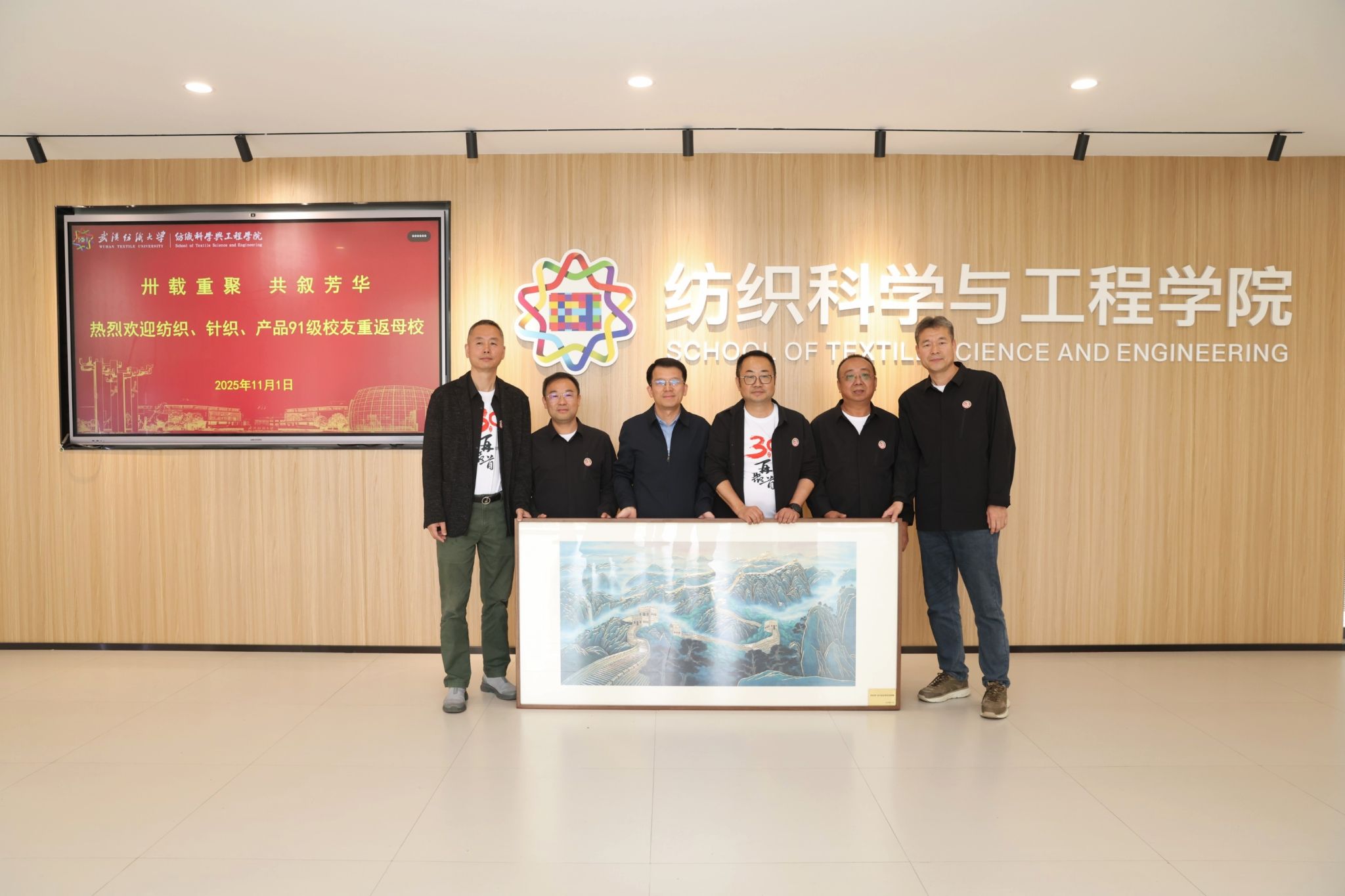 敬赠铜雕画《众志成城》作为纪念,寓意全体校友同心同德,共筑母校如长城般坚实稳固的基业,祝愿母校教育事业如巍巍长城,屹立长青,蒸蒸日上。校友们还参观了纺织科技馆与荆楚纺织非遗馆,并漫步校园,切身感受母校三十年来的巨大变迁与蓬勃发展。