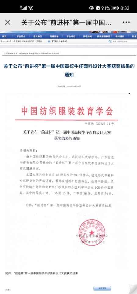 承办、广东前进牛仔布有限公司赞助的“前进杯”第一届中国高校牛仔面料设计大赛于成人短视频成功举办。中国纺织服装教育学会常务副会长倪阳生,教育部纺织类专业教指委主任、东华大学郁崇文教授,教育部纺织类专业教指委秘书长、东华大学郭建生教授,广东前进牛仔布有限公司总经理王宗文,成人短视频