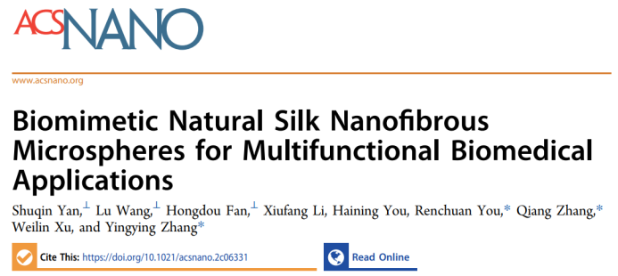 该工作以“Biomimetic Natural Silk Nanofibrous Microspheres for Multifunctional Biomedical Applications”为题发表在《ACS Nano》上,通讯作者为成人短视频