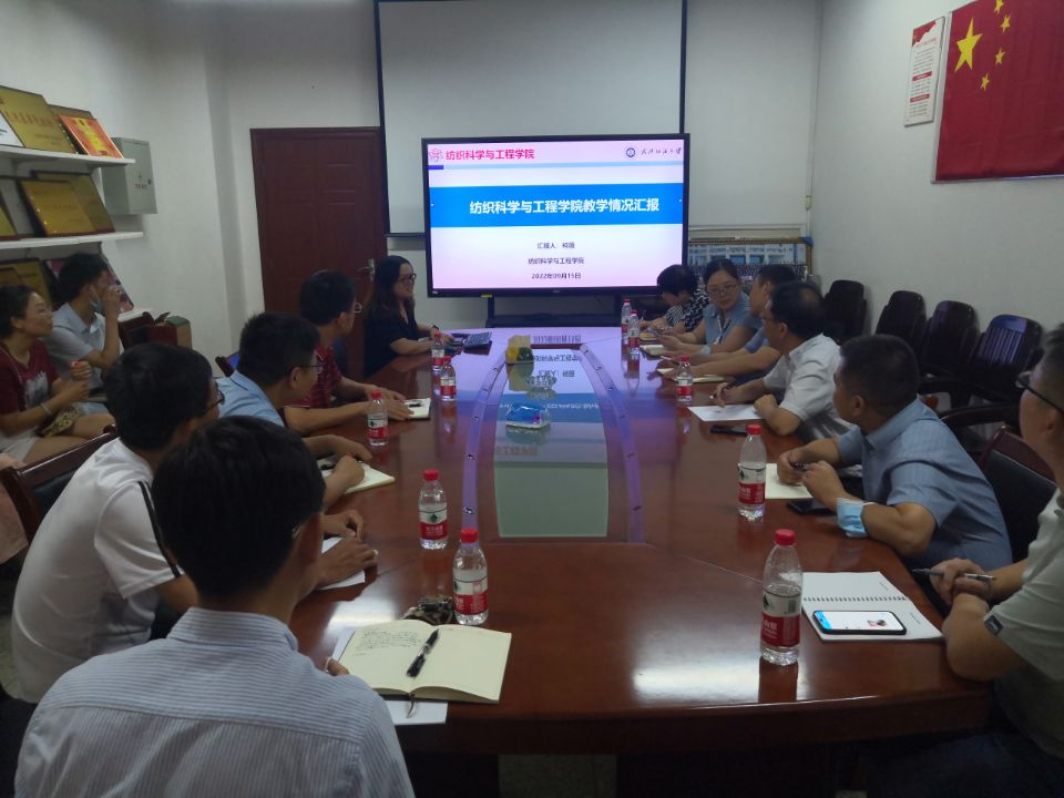 王处长一行首先参观了我院纺织材料性能表征实验室、纺纱实验室、非织造实验室等教学实验室,实验室主任陈军老师为各位领导详细介绍了各实验室的基本情况、实践教学运行状况、实验室设备使用等基本情况。
