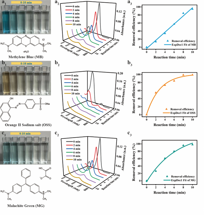 该自供能电化学系统对于不同种类有机污染物具有普适性,在10分钟内,该自供能电化学系统对5 ppm亚甲基蓝、金橙和孔雀石绿的分解率,分别达到94.6%、98.9%、97.9%。该工作发表在《Advanced Function Materials》上(DOI:10.1002/adfm.202210637),第一作者为华中科技大学刘子川博士,成人短视频
