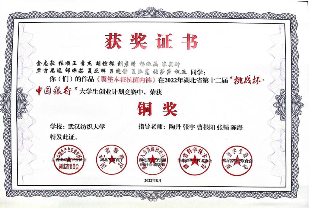 我的科技成果一定要普惠到更多的人,要能够为服务于社会需求!说起创业的初衷,他总会这样说。在疫情期间,他发现脱掉闷热的防护服的医生满身是汗,这不仅会大量滋生细菌,还会影响到医生的健康,于是他召集自己的同学一同创建了武汉市东锦湖商贸有限公司,并担任法人一职创造了属于自己的抗菌内衣。实现了把在实验室所学习的专业知识在实践中完成转化的探索,目前公司的空气管理技术应用于稳健集团大健康产品、耐晒颜色技术应用于空军飞行员抗荷服。
