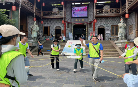 活动伊始,大家便在教官的指导下,进行了动感颠球小游戏。活动中,一队学员同时合力颠一个排球,几队同时比赛,持续时间久的队为胜。该项目目标:一是协调性与统一性的培养;二是如何达到良好的团队协作; 三是体验目标管理与时间管理; 四是如何面对并适应变化。在整个比赛过程中,掌声与欢呼声此起彼伏,洋溢着热闹欢快的气氛。随后,教职工还按照老中青分成若干小组,完成近2小时徒步活动,增强了协作互助、共克困难、积极进取意识。