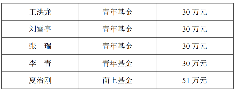 8月24日,国家自然科学基金委员会公布了2023年国家自然科学基金集中接收申请项目评审结果。据统计,我院获批国家自然科学基金项目5项,其中包括面上项目1项,青年科学基金项目4项,总立项直接经费171万元,获批人员名单及直接经费如下: