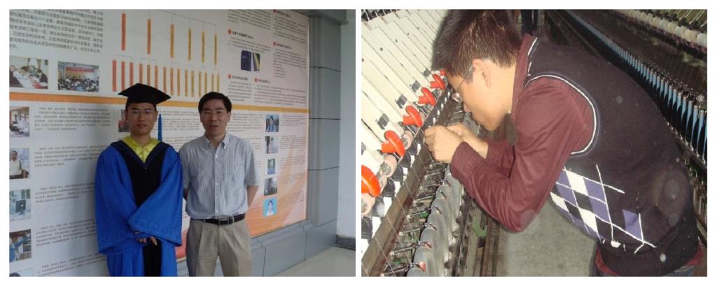 纺织工程专业。面对其他人“学纺织就是单纯种棉花、织布、做衣服”的担忧,夏治刚却有着不同的看法,说起报考原因,他说:“纺织是我和亲人朋友从小就接触的行业,我是农民的孩子,安徽多是平原,小时候我站在小土坡上也没看得多远,终于有机会能去见识外面的世界,能去学习更多的知识,那我就要研究这个我亲人朋友都离不开的专业,争取干出样来,再回馈他们!”这粒纺织的种子在这时就在夏治刚心里生了根。后来,在面对人生多个十字路口——2006年研究生报考和2009年博士报考时,夏治刚一直坚持纺织工程这一个方向、一个课题,在硕博期间,他跟随着导师徐卫林的步伐,在纺织企业一线了解需求、提供方案、为学校带回行业发展动态,6年的硕博生涯,其中4年的时光他都企业度过,他也成为了同学口中的“企业学生”。2013年3月,夏治刚以老师的新角色继续坚持着他的纺织梦想。