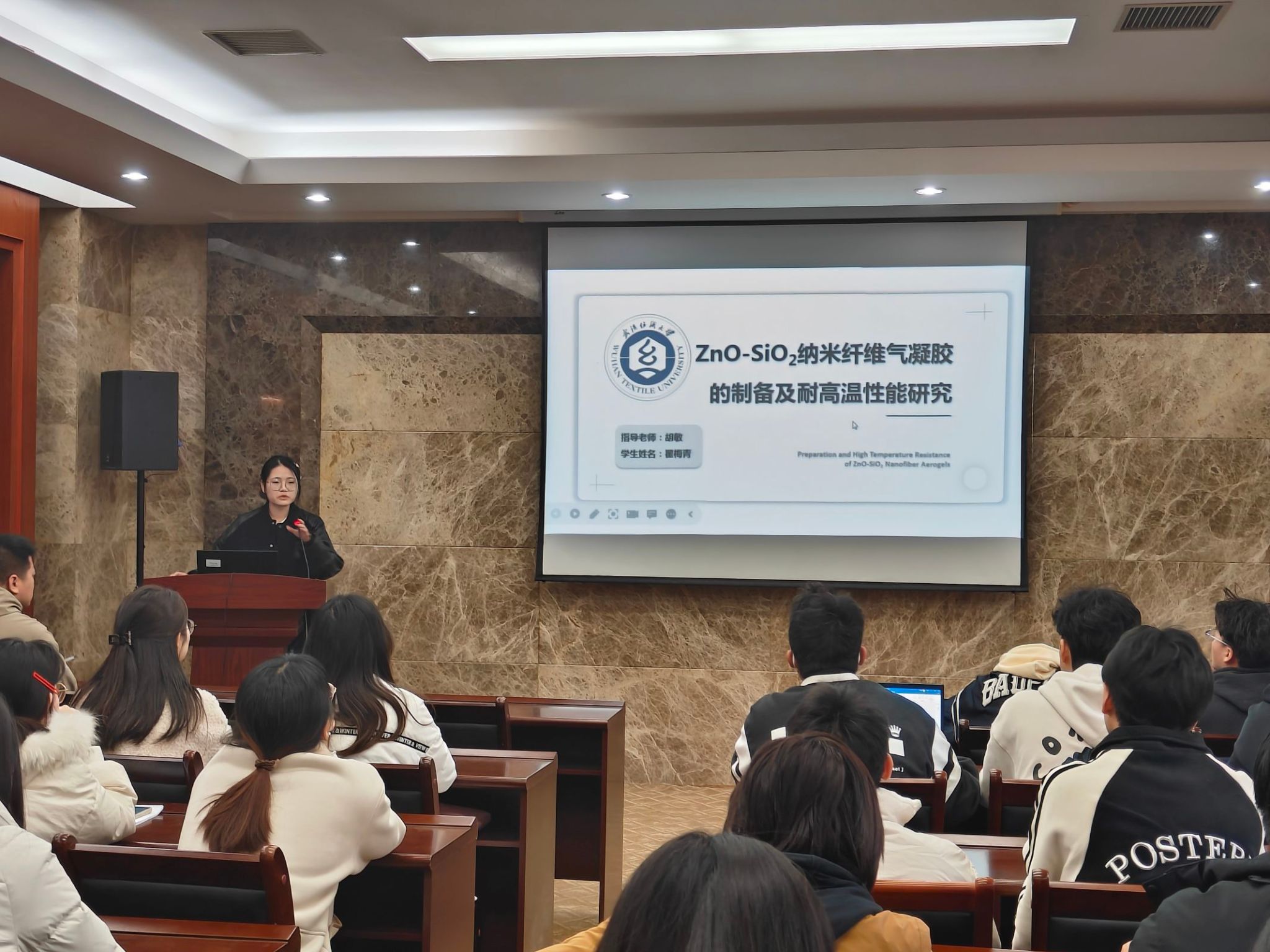 论坛上,辛利、翟梅青、马琦、屈雪茹四位同学依次介绍了自己的研究课题以及目前取得的研究进展,并分享了自己的科研项目和经验。主讲同学的研究课题包括芳纶短纤增强聚氨酯护舷材料力学性能研究、超轻耐高温纳米纤维气凝胶的制备与性能研究、纺织印花糊料及其复合体系应用性能研究、具有超阻燃和可重复火灾报警响应性能的复合气凝胶纤维用于消防服,契合了“纺织新材料及绿色加工”主题,代表了成人短视频