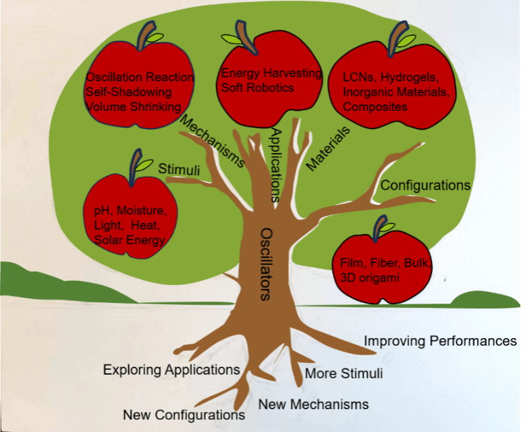 2.全面描述了自振荡致动器在材料种类、刺激类型、尺寸和应用方面的研究进展。
