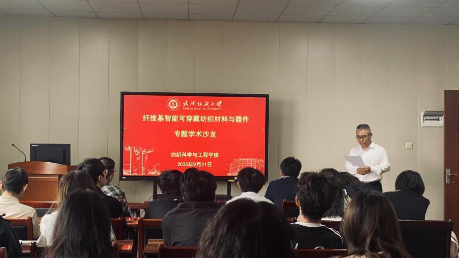 对其到来表示诚挚欢迎。会议期间,董凯、苏彬、夏治刚、柯薇、罗磊分别做主题报告,就智能纤维材料、功能纺织品等议题展开交流,契合了“纤维基智能可穿戴纺织材料与器件”主题,为在场师生呈现出一场精彩纷呈的学术盛宴。并和在场师生围绕关键科学问题、创新性研究方向、产品应用市场等方面展开了深入的探讨,现场气氛热烈。
