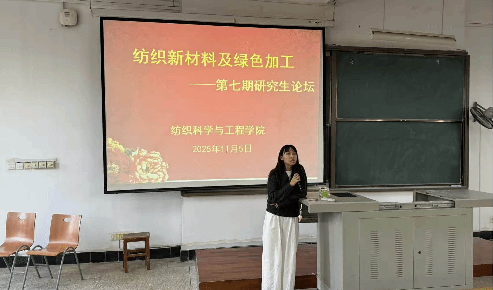 的科研工作,加强师生间的学术交流,提高研究生素质和学术氛围,我院于11月5日下午14:30举办了第七期“纺织新材料及绿色加工”研究生论坛。