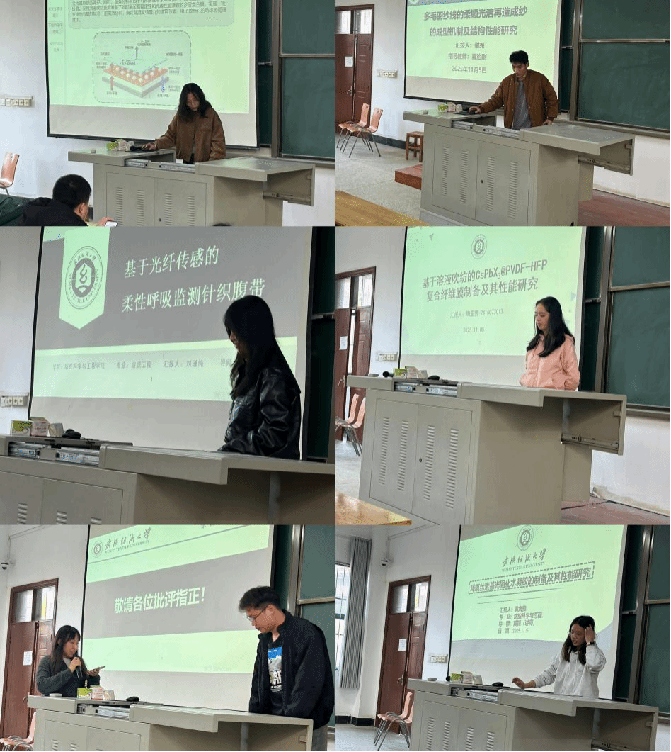 论坛上,张蓉欣、谢尧、刘瑾纯、陶亚男、周迅、祁小圣、黃肃雅七位同学依次介绍了自己的研究课题和目前取得的研究进展,并分享了自己的科研经验。主讲同学的研究课题包括基于溶液吹纺的相变/辐射冷却一体化纳米纤维膜制备及其性能研究、多毛羽纱线的柔顺光洁再造成纱的成型机制及结构性能研究、基于光纤传感的柔性呼吸监测针织腹带、基于溶液吹纺的CsPbX3@PVDF-HFP复合纤维膜制备及性能研究、生物质导电水凝胶在传感领域的制备和性能研究、MXene基喷墨打印柔性传感器的制备及性能研究、释氧丝素基光固化水凝胶的制备及其性能研究,契合了“纺织新材料及绿色加工”主题,代表了成人短视频