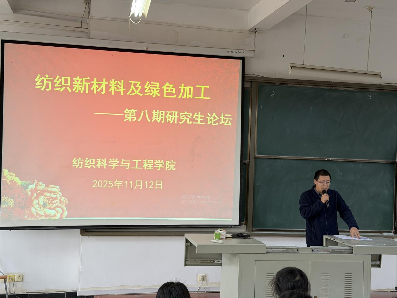 的科研工作,加强师生间的学术交流,提高研究生素质和学术氛围,我院于11月12日下午14:30举办了第八期“纺织新材料及绿色加工”研究生论坛。
