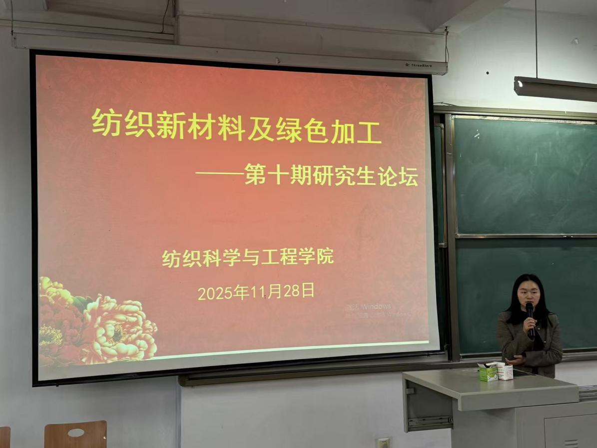 为了进一步促进学院的科研工作,加强师生间的学术交流,提高研究生素质和学术氛围,我院于11月28日下午14:00举办了第十期“纺织新材料及绿色加工”研究生论坛。