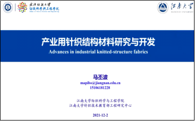 研究生视野能力和学术素养,我院于12月2日下午邀请成人短视频优秀校友马丕波教授以“产业用针织结构材料研究与开发”为题进行了线上学术交流。成人短视频
