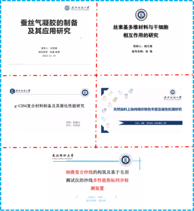 论坛上,孙思捷、杨文靖、闫昌旺、蒋慧、齐硕五位同学分别介绍了自己的研究课题和目前取得的研究进展,并分享了自己的科研经验。主讲同学的研究课题涵盖了丝素基纤维、复合材料、纯棉织物、复合纱线等领域,契合了“纺织新材料及绿色加工”主题,代表了成人短视频