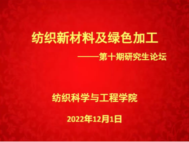 的科研工作,加强师生间的学术交流,提高研究生素质和学术氛围,我院于12月1日使用腾讯会议(938896287)举办了第十期“纺织新材料及绿色加工”研究生论坛。成人短视频