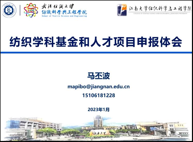 、际华-武纺功能材料与纺织新技术研发中心邀请江南大学马丕波教授,于1月7日下午以“纺织学科基金与人才项目申报体会”为题进行了线上学术交流。院长蔡光明教授及成人短视频