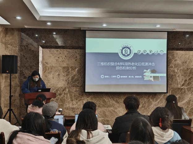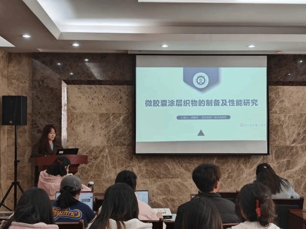论坛上,孙治国、史纳蔓、梁雁、潘钰、龚婉琴、王家轩和郑冰倩七位同学依次介绍了自己的研究课题和目前取得的研究进展,并分享了自己的科研经验。主讲同学的研究课题包括热塑性淀粉/PBAT复合材料、液态金属基纤维复合材料、真丝织物与植物染料喷墨印花、SnO2中空纤维负载纳米金属、微胶囊涂层织物、三维机织复合材料、UHMWPE纤维层合板,契合了“纺织新材料及绿色加工”主题,代表了成人短视频
