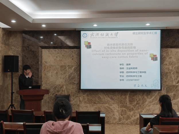 论坛上,力一颖、黄建、陈莹、邵晓宇、宋瑶和吴烨六位同学依次介绍了自己的研究课题和目前取得的研究进展,并分享了自己的科研经验。主讲同学的研究课题包括荧光碳量子点、丝素粉体、葡萄糖与聚谷氨酸生物基美拉德反应产物、纤维素/MOF复合纤维、玄武岩三维机织管状复合材料、免烫棉织物,契合了“纺织新材料及绿色加工”主题,代表了成人短视频