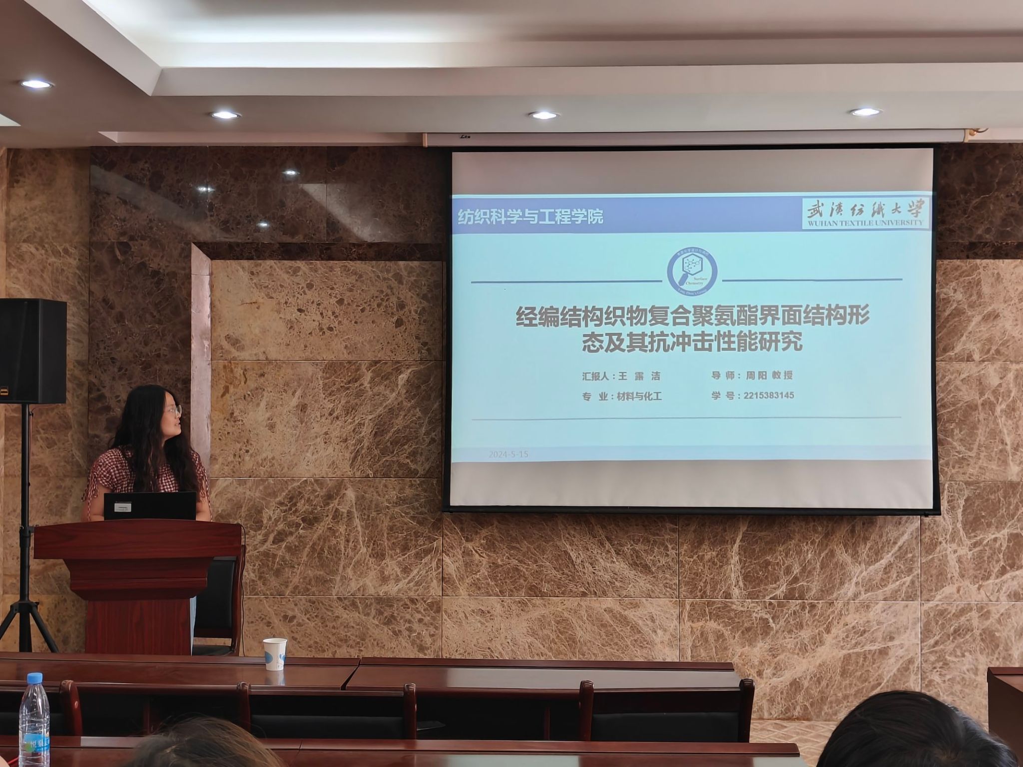 论坛上,吴桂林、郭锦章、王露洁、高晶晶、唐琪5位同学依次介绍了自己的研究课题和目前取得的研究进展,并分享了自己的科研经验。主讲同学的研究课题包括多层级结构抗冲击复合纱线及其织物、蚕丝纳米纤维复合材料、经编结构织物复合聚氨酯界面、UHF RFID转能器、新型有机无机阻燃体系,契合了“纺织新材料及绿色加工”主题,代表了成人短视频