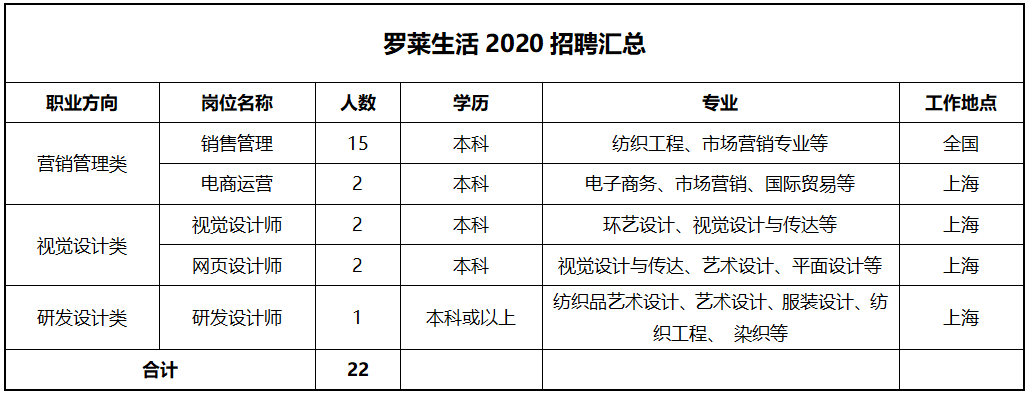 微信端网申地址:搜索“罗莱生活招聘”公众号-校园招聘栏,或校内海报二维码