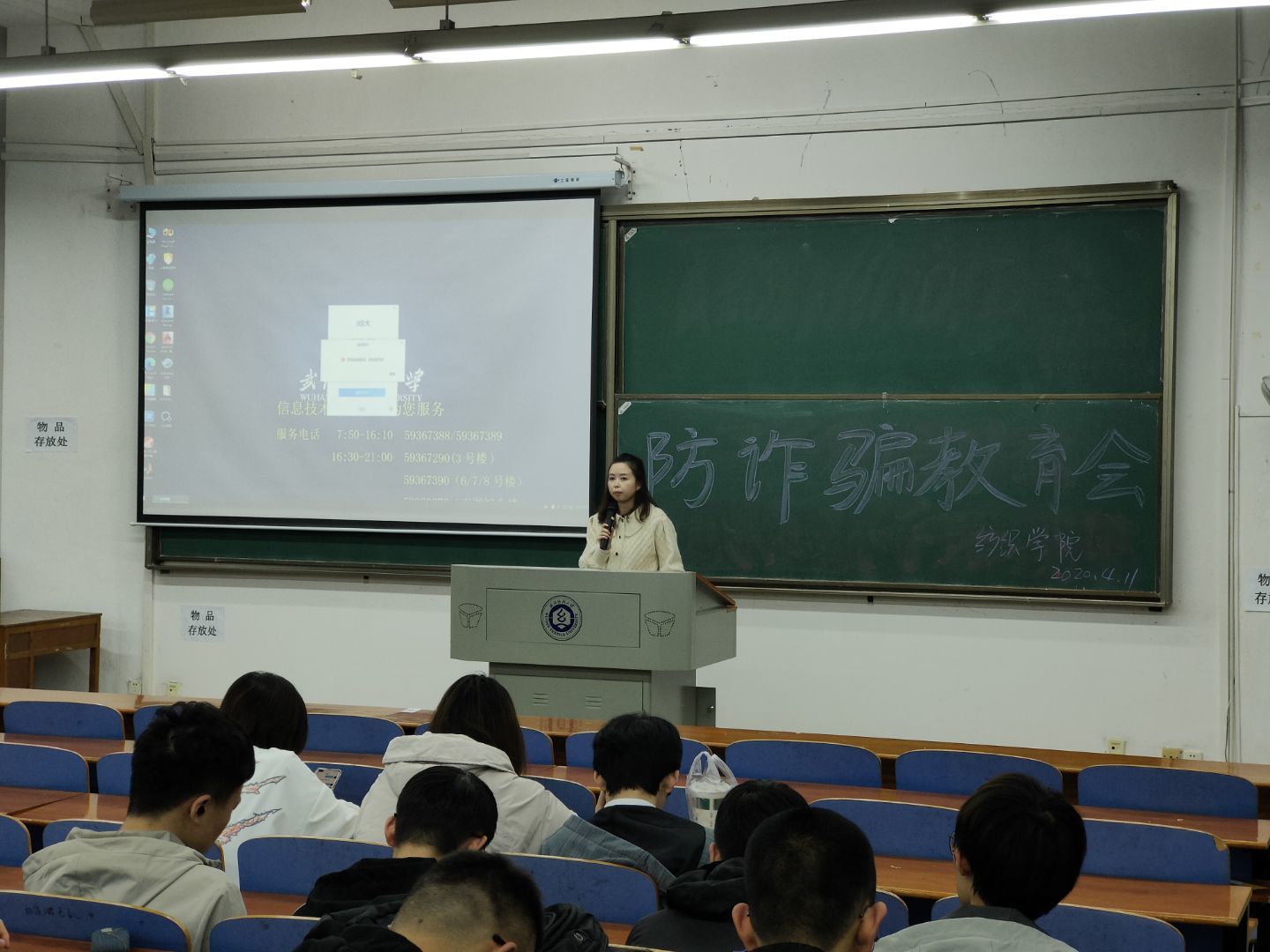为增强在校学生防诈骗意识,降低电信网络诈骗发案率,以此保障同学们的财务安全,4月11日下午7点,各年级辅导员及班主任老师开展防电诈安全教育班会,重点针对非法校园贷、传销、电信诈骗等深入开展防范处置工作教育。