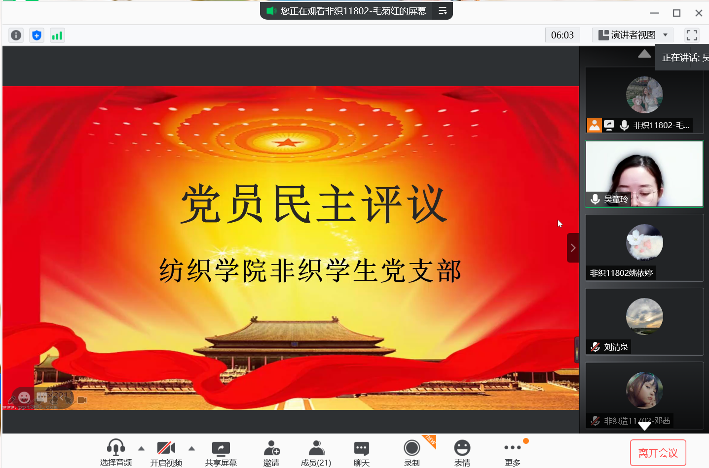 12月28日晚,非织学生支部通过线上+线下相结合的方式召开了度民主评议党员活动总结交流会,成人短视频