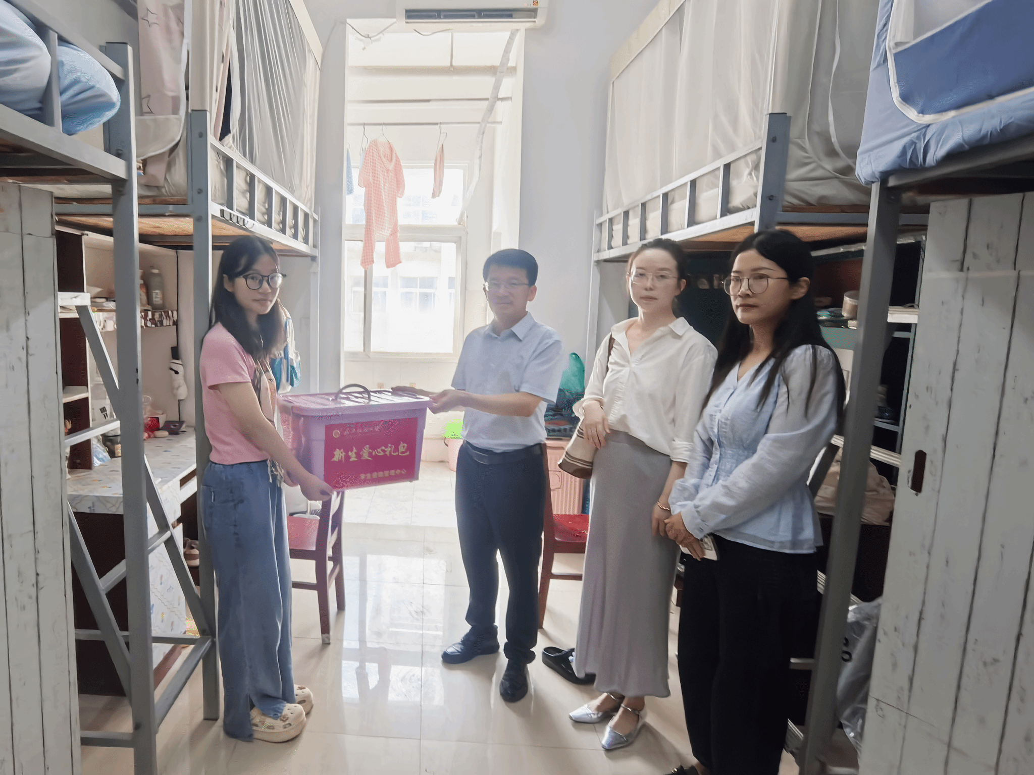 成人短视频 领导班子深入迎新一线,亲切慰问工作人员和志愿者,与新生、家长面对面交流。院领导还走访新生宿舍,为家庭经济困难学生送上“暖心礼包”,细致询问入住适应情况,传递成人短视频 的关怀与温暖。