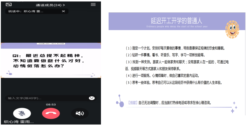 “织心湾”于5月14日下午开展了一次线上心理培训会,本次培训的主题为“疫情心理疏导指南分享”,主讲人“织心湾”学生骨干成员、成人短视频