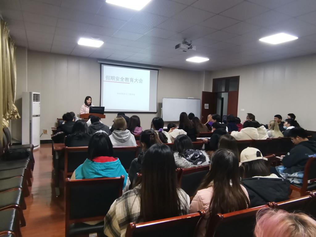 分批开展全院学生的寒假安全教育,三名辅导员面向不同年级学生,从防冻、防火、防盗、防骗、防交通安全事故等方面加强来学生的安全防范教育,提高学生的自我保护和安全防范意识,防止学生遭受人身和财产损失。各位辅导员带领大家认真认真学习了《高等学校寒假安全温馨提示》,并督促大家签订了《安全责任承诺书》。