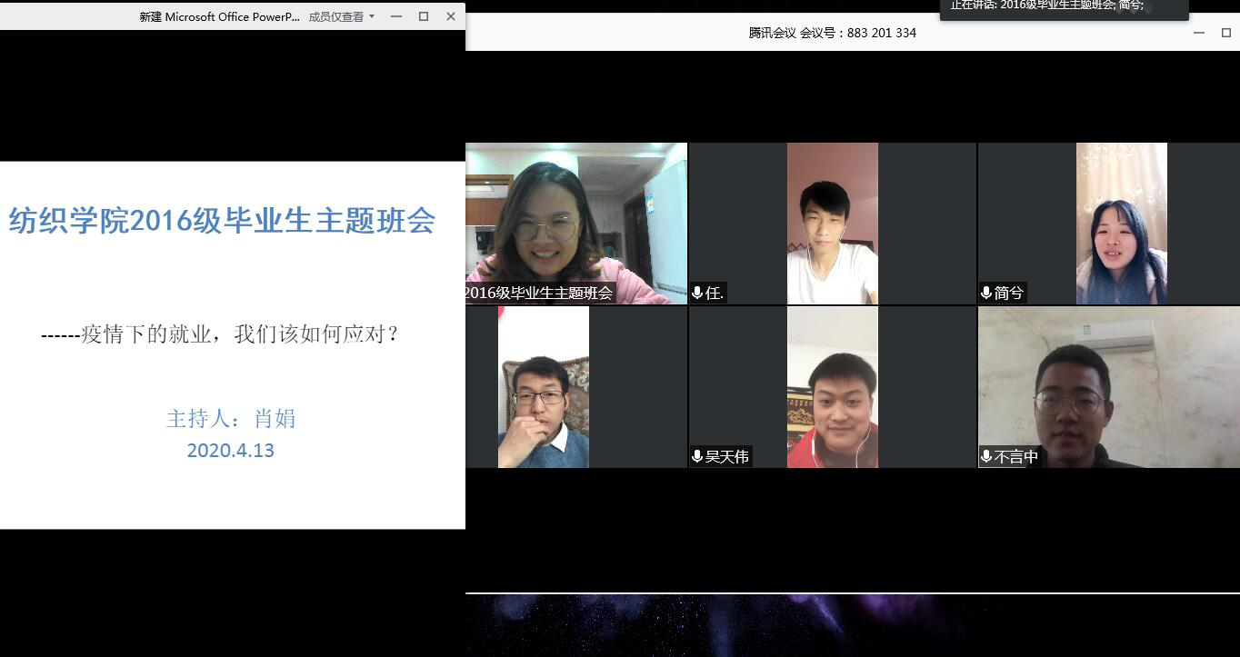 召开了2016级毕业生网上主题班会,2016级部分毕业生参加了此次班会,班会由辅导员肖娟主持。