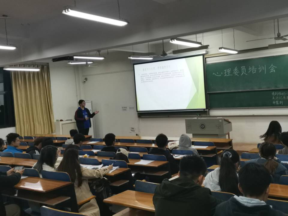 首先他为各位心理委员讲解了幽默以及幽默心理学的概念,幽默对大家的作用。幽默在我们日常交际中可以拉进人与人之间的距离,收获友情和爱情。然后为大家提了一些建议:适度幽默,分清场合,说话的技巧,幽默吐槽。随后大家一起观看了一个幽默吐槽的视频。最后讲到合适的幽默风趣的言语可以让爱情之花更加绚烂。会后,织心湾部长给各心委发了心理报告单的相关填写要求做具体讲解,例如姓名和日期的填写要求及上交的时间,并给大家讲解了相关格式。